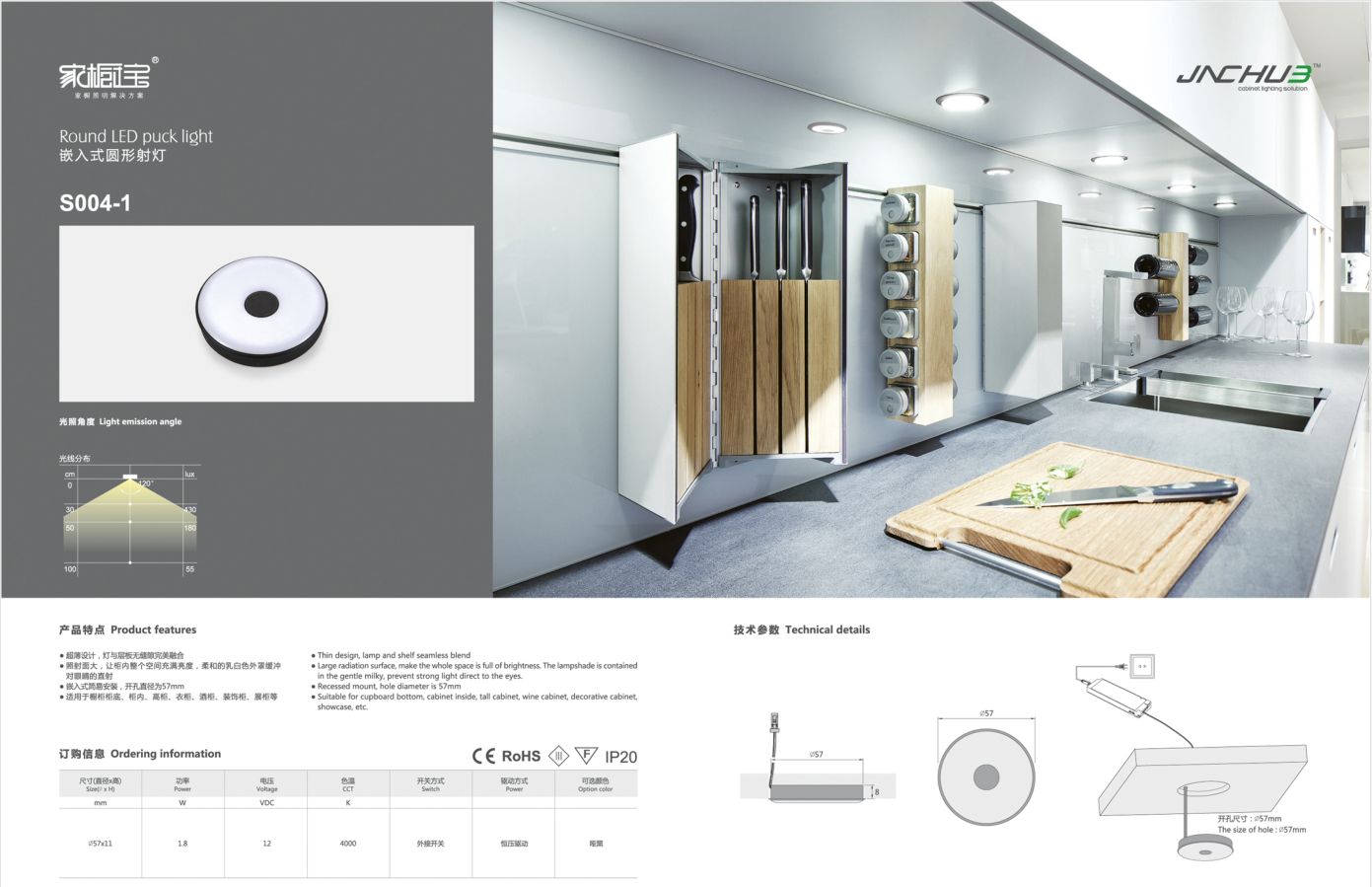 嵌入式简易安装,开孔直径为57mm