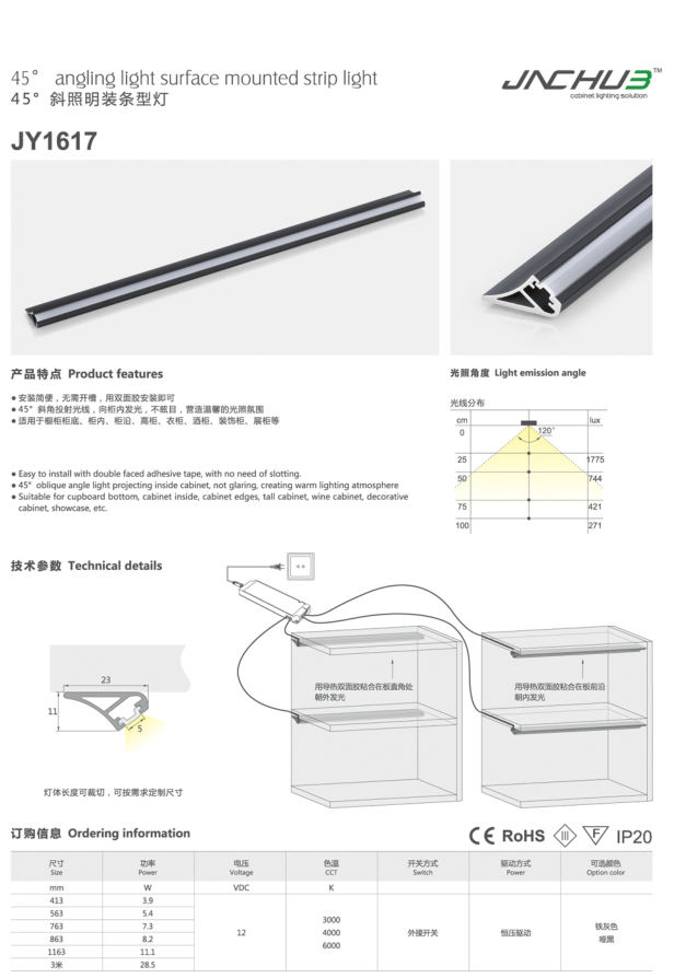 适用于橱柜柜底、柜内、柜沿、高柜、衣柜、酒柜、装饰柜、展柜等