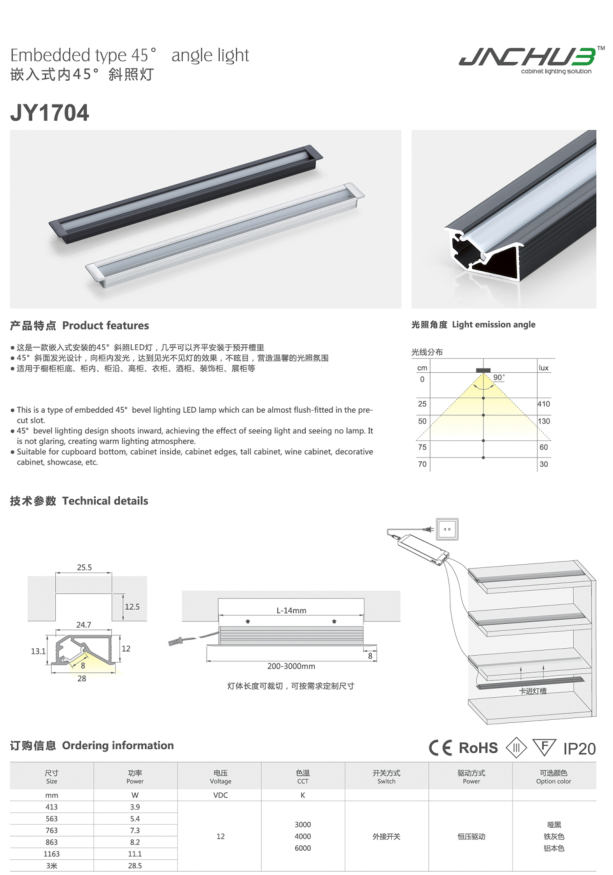 这是一款嵌入式安装的45°斜照LED灯,几乎可以齐平安装于预开槽里