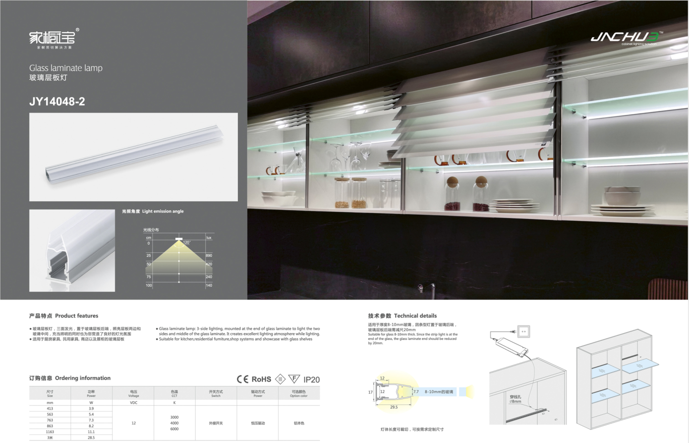玻璃层板灯,三面发光,置于玻璃层板后端,照亮层板两边和玻璃中间,充当照明的同时也为您营造了良好的灯光氛围