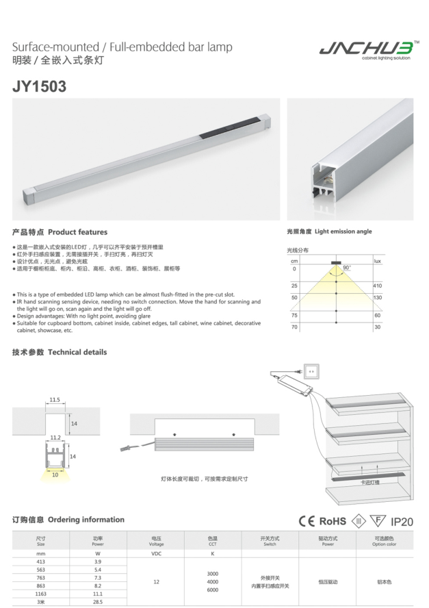 明装/全嵌入式条灯JY1503