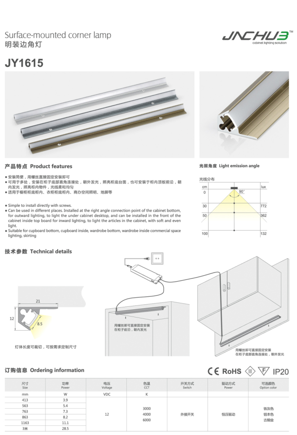 适用于橱柜柜底柜内、衣柜柜底柜内、商办空间照明、地脚等