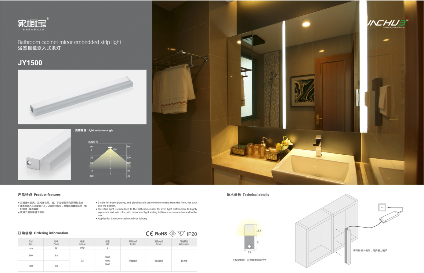 > 浴室柜镜嵌入式条灯-JY1500